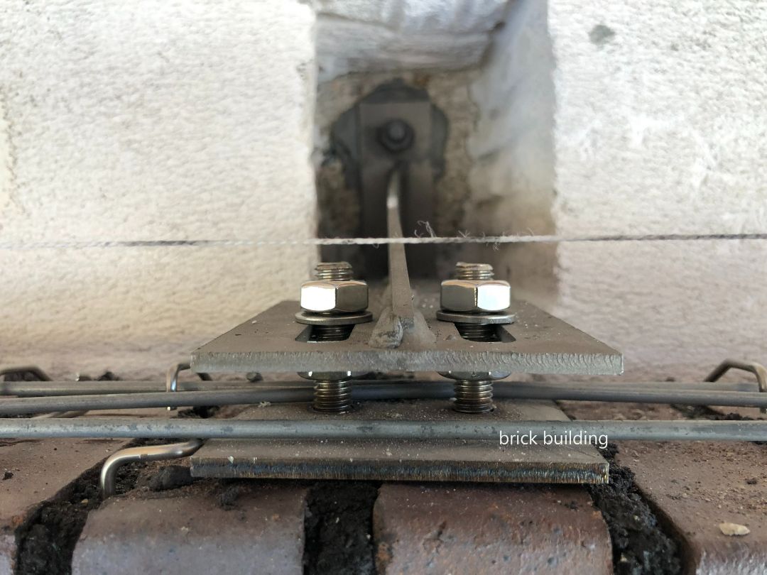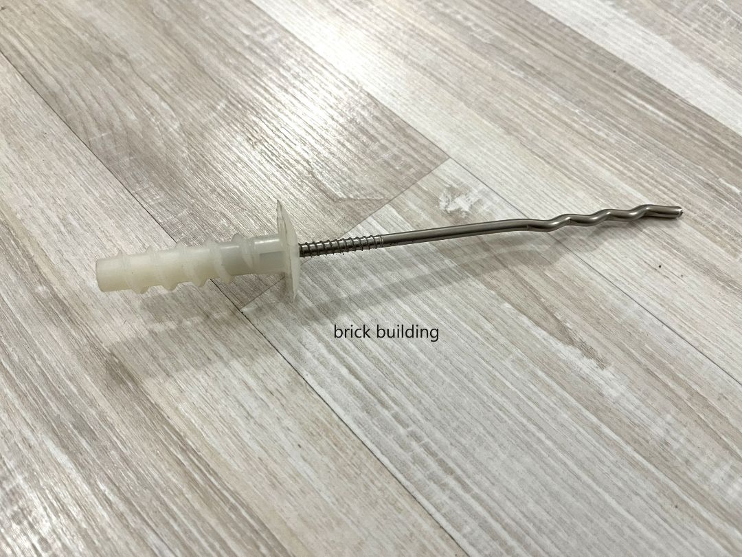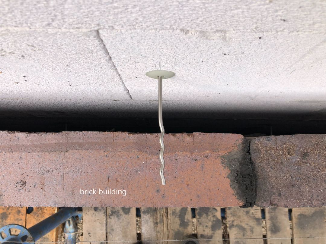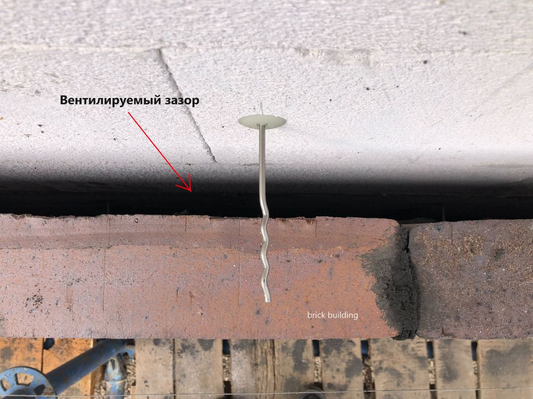 В качестве гибких соединительных связей лицевой кладки ригельного кирпича с блоком использовали металлические связи с пластиковым дюбелем от компании Termoclip.