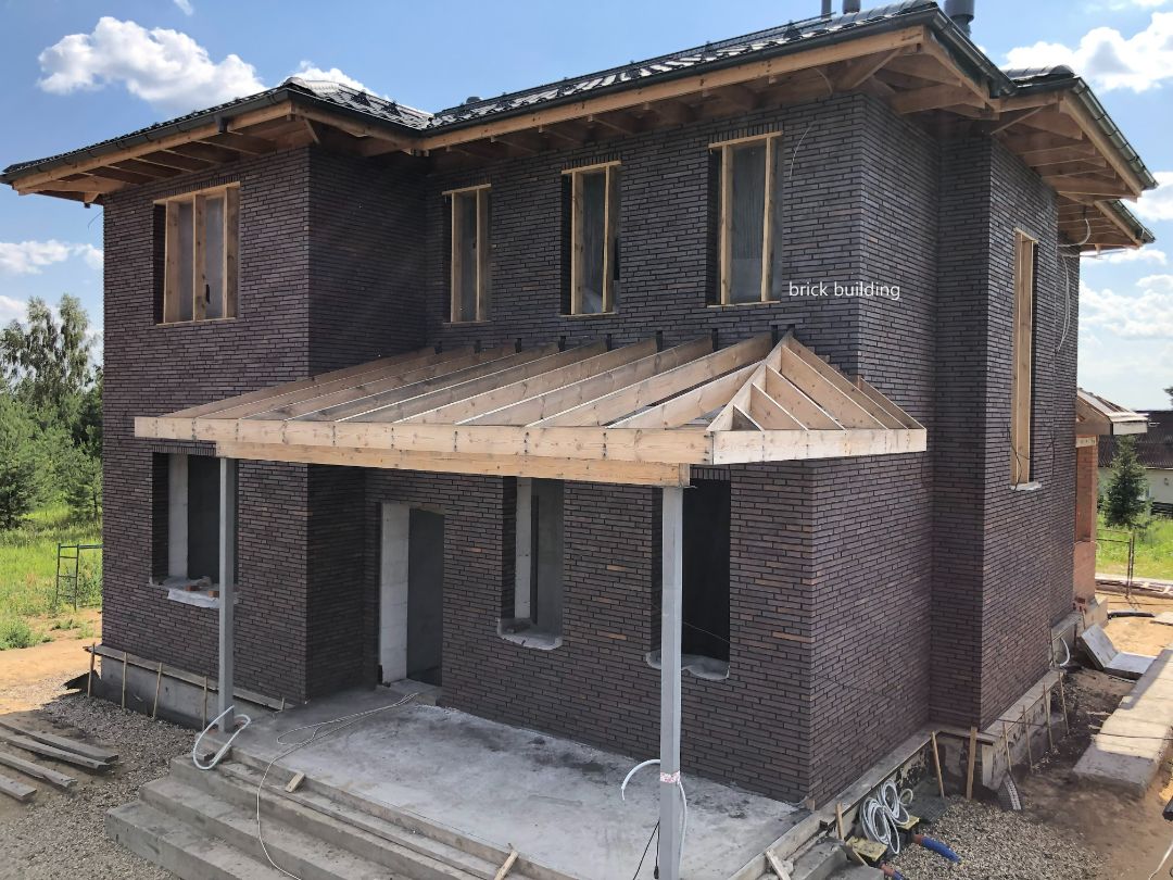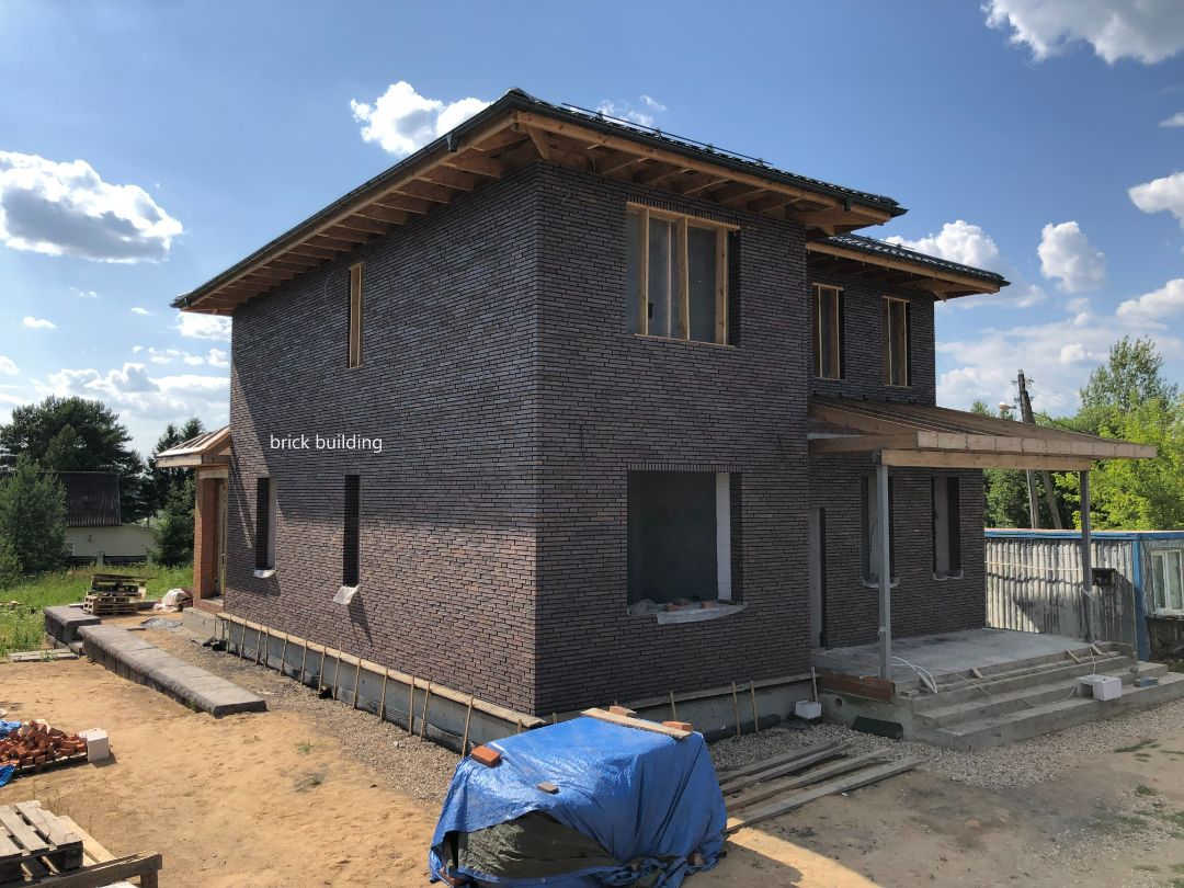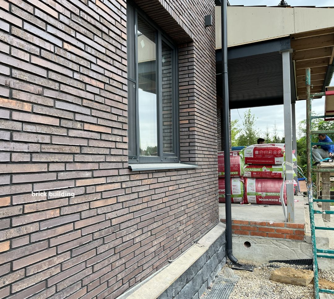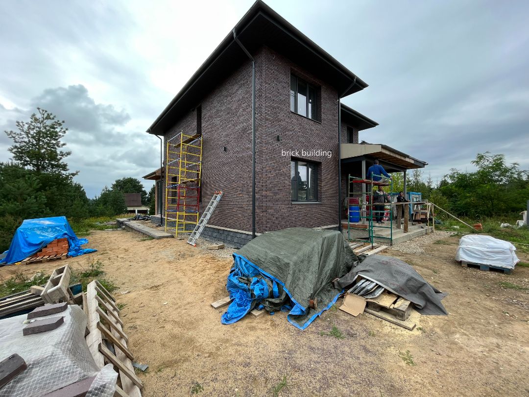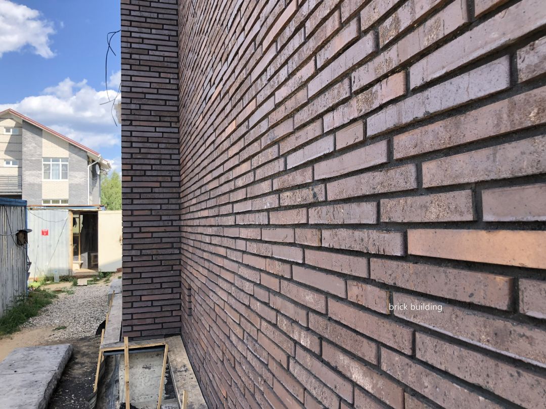 Для облицовки фасада использовали клинкерный ригельный кирпич Skriabin Ceramics (Сортировка 54) с влагопоглощением 5 %.