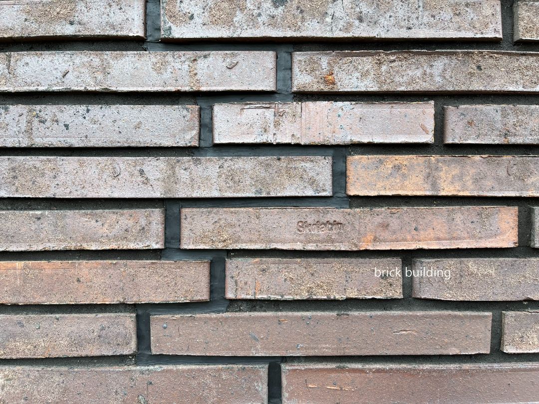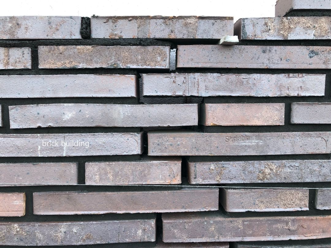 Кладка ригельного кирпича с хаотичной раскладкой на цветную кладочную смесь Quick-mix.