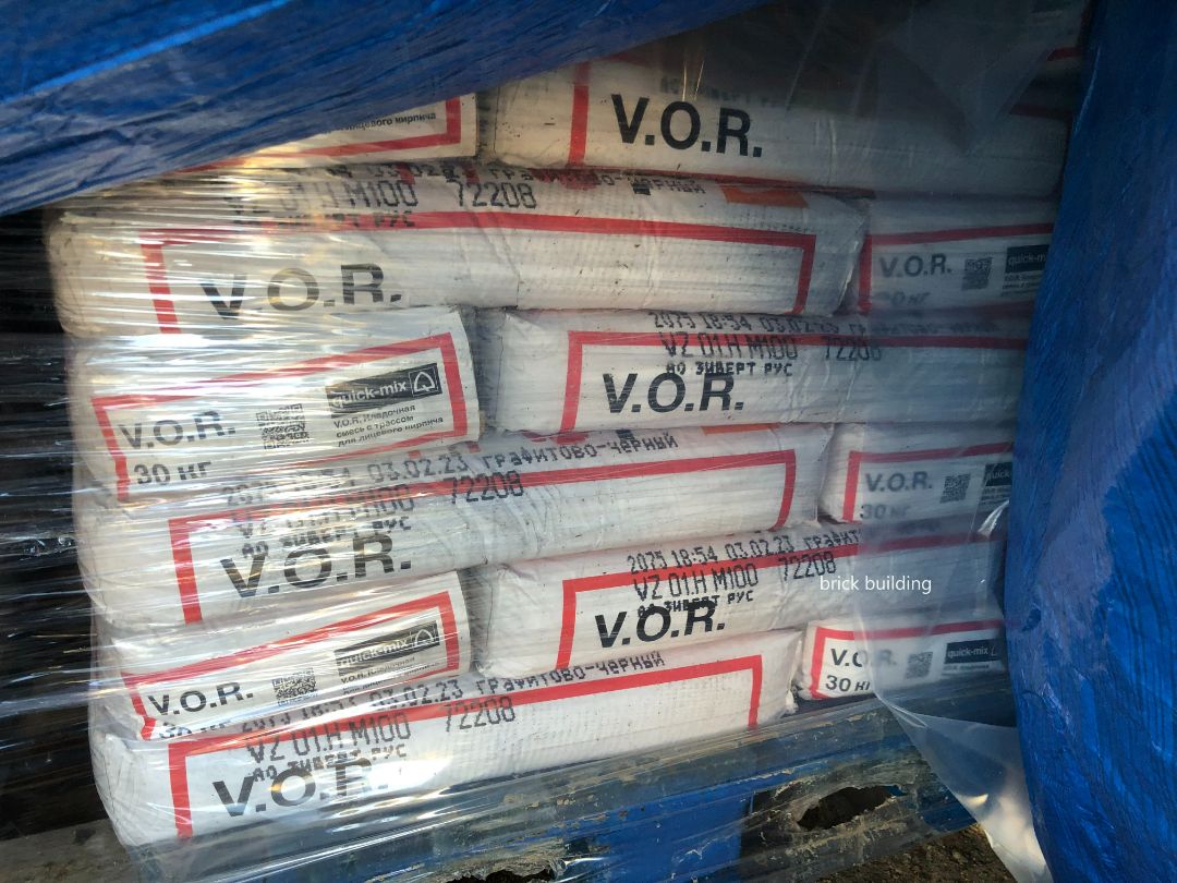 Для кладки кирпича использовали цветную кладочную смесь Quick-mix VZ 01 графитово-чёрного цвета для кирпича c водопоглощением 2-5 %.