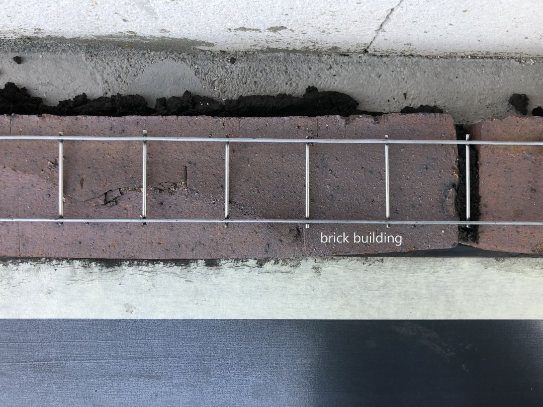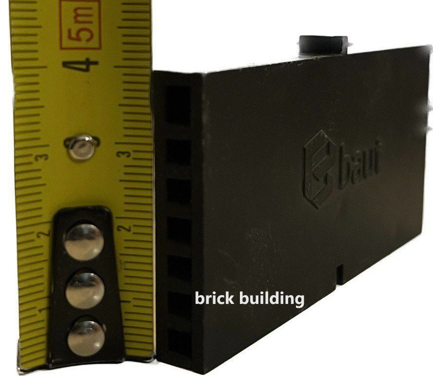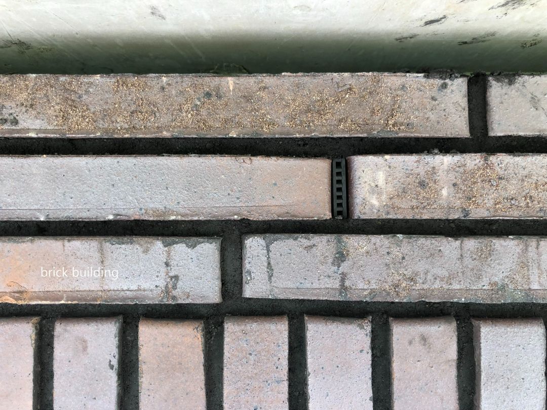 Для вентиляции и отвода влаги необходимо делать вентиляционный зазор и в вертикальные швы кладки ригельного кирпича устанавливать вентиляционные коробочки. Мы установили вент. коробочки BAUT для ригельного кирпича в первом и предпоследнем рядах лицевой кладки через каждые 2 кирпича, также они были установлены под проёмами и над проёмами.