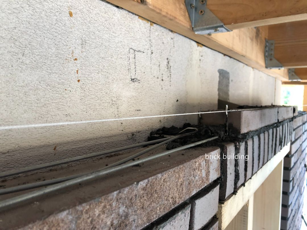 Армировали лицевую кладку сеткой из стали с антикоррозионным покрытием. Армирование производили через каждые 5 рядов.