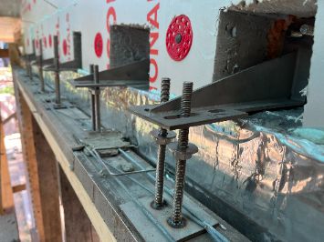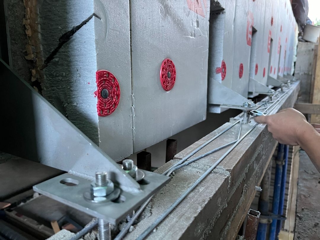 Кирпич имеет разные оттенки серого цвета, от светло-серого местами переходящего в белый до коричнево-серого, поэтому мы решили выбрать цвет смеси, который будет балансировать между этими оттенками и не создавать напряжение - им стал свело-серый. Кладочную смесь выбрали завода Quick-mix, так как работаем с ней уже более 10 лет и ни разу она нас не подвела.