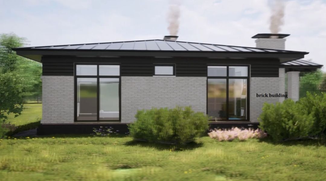 Одноэтажный дом с комбинированным фасадом
